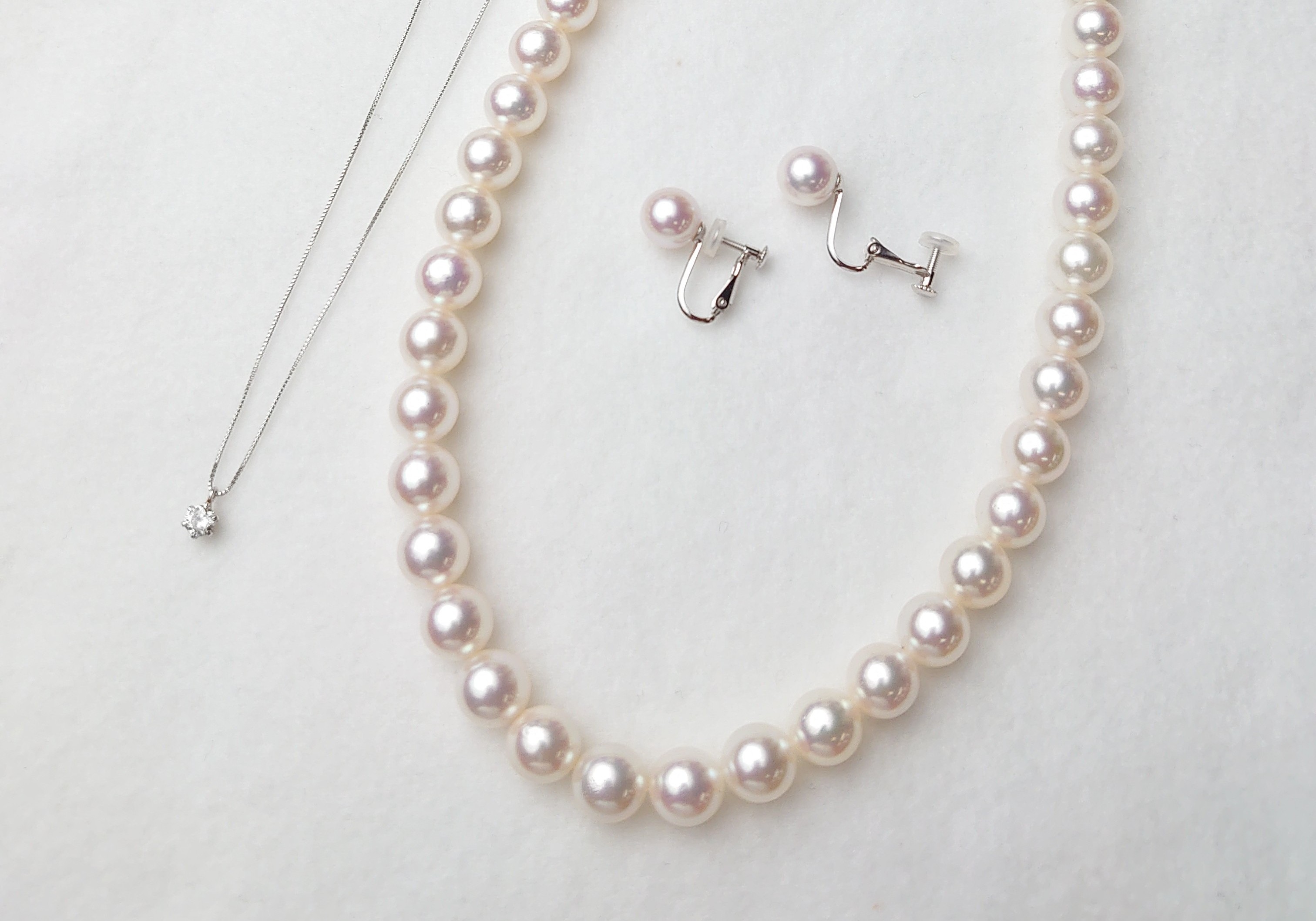 あこや真珠ネックレス8.5㎜・イヤリング8.5㎜・ダイヤペンダントセット 税込450,000円
