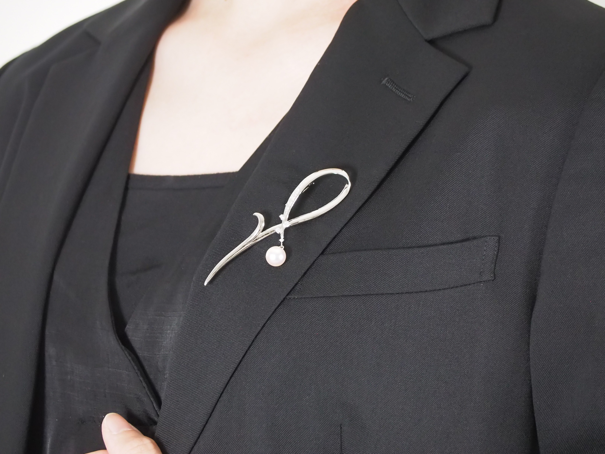 あこや真珠ブローチ<あさつゆ> ¥138,600 あこや真珠 ジャケット スーツ フォーマル 入学式 卒業式 結婚式 数量 カートに入れる アイテム説明 素材・詳細 ジュエリーデザイナーによる朝露をイメージしたオリジナルデザインのブローチです。純粋な心のように、世界を映して輝く朝露をイメージした、シンプルなデザインです。約8cmの少し長めの全長と8.5mm照りの良い珠が揺れることで、シンプルながらしっかりした存在感があります。 アイテム詳細 素材 あこや真珠 ・ダイヤモンド 地金 Silver サイズ あこや真珠約8.5mm ダイヤ約0.18ct 全長約8cm