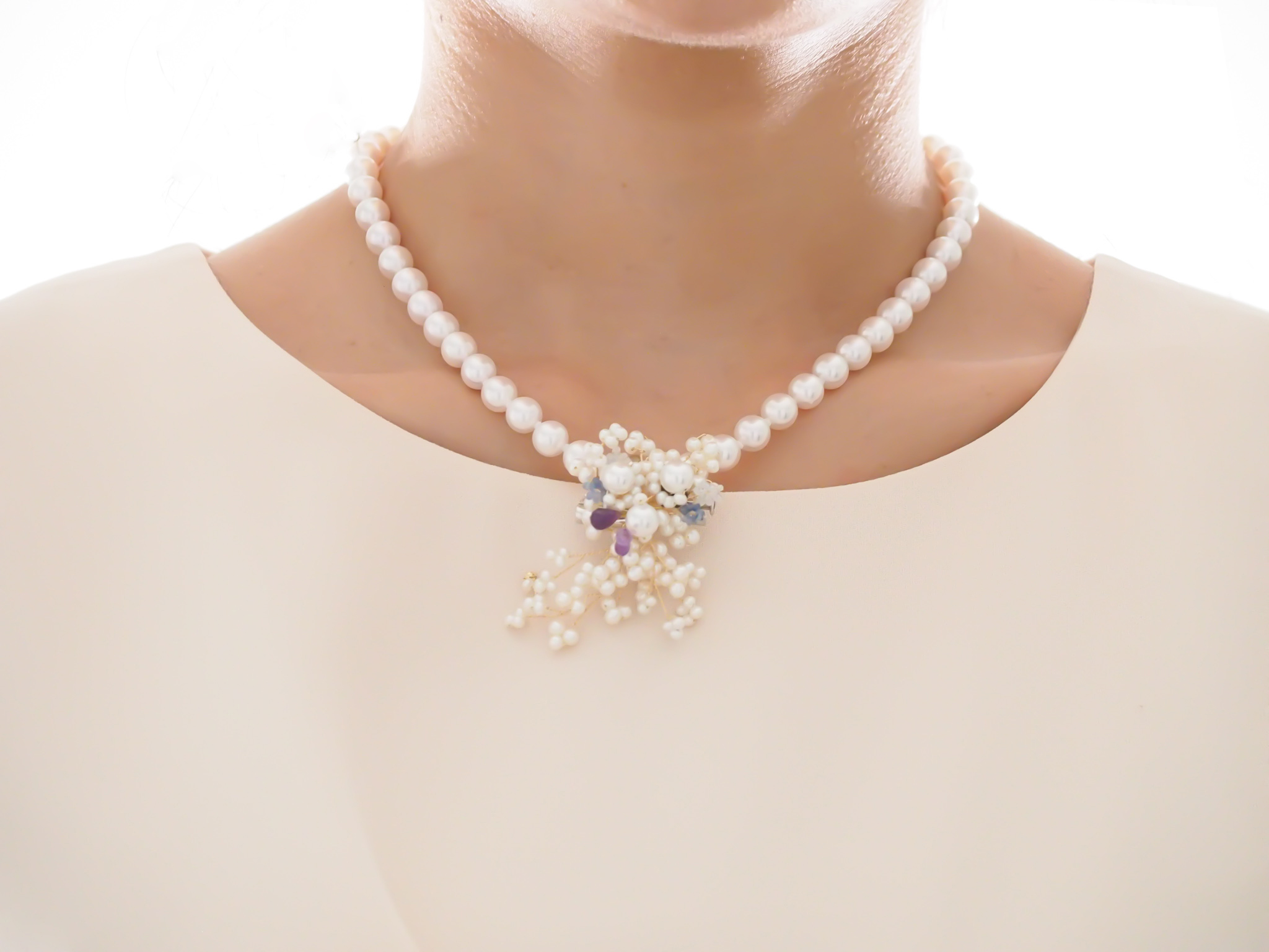 | 素材 | あこや真珠、淡水真珠、アメジスト、サファイヤ |