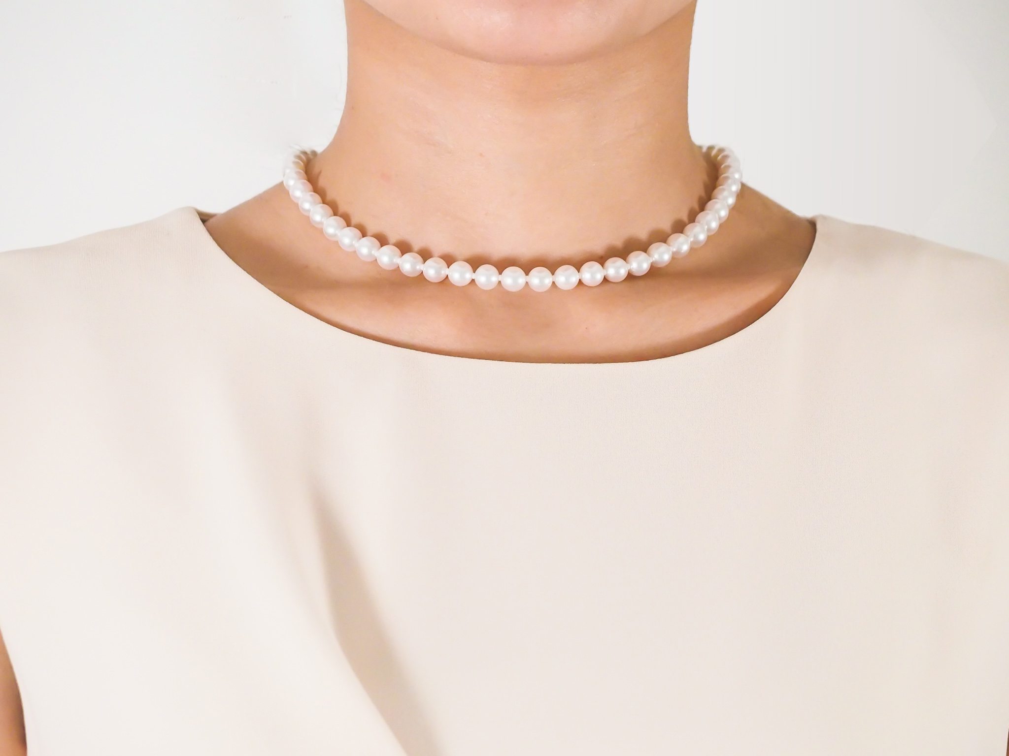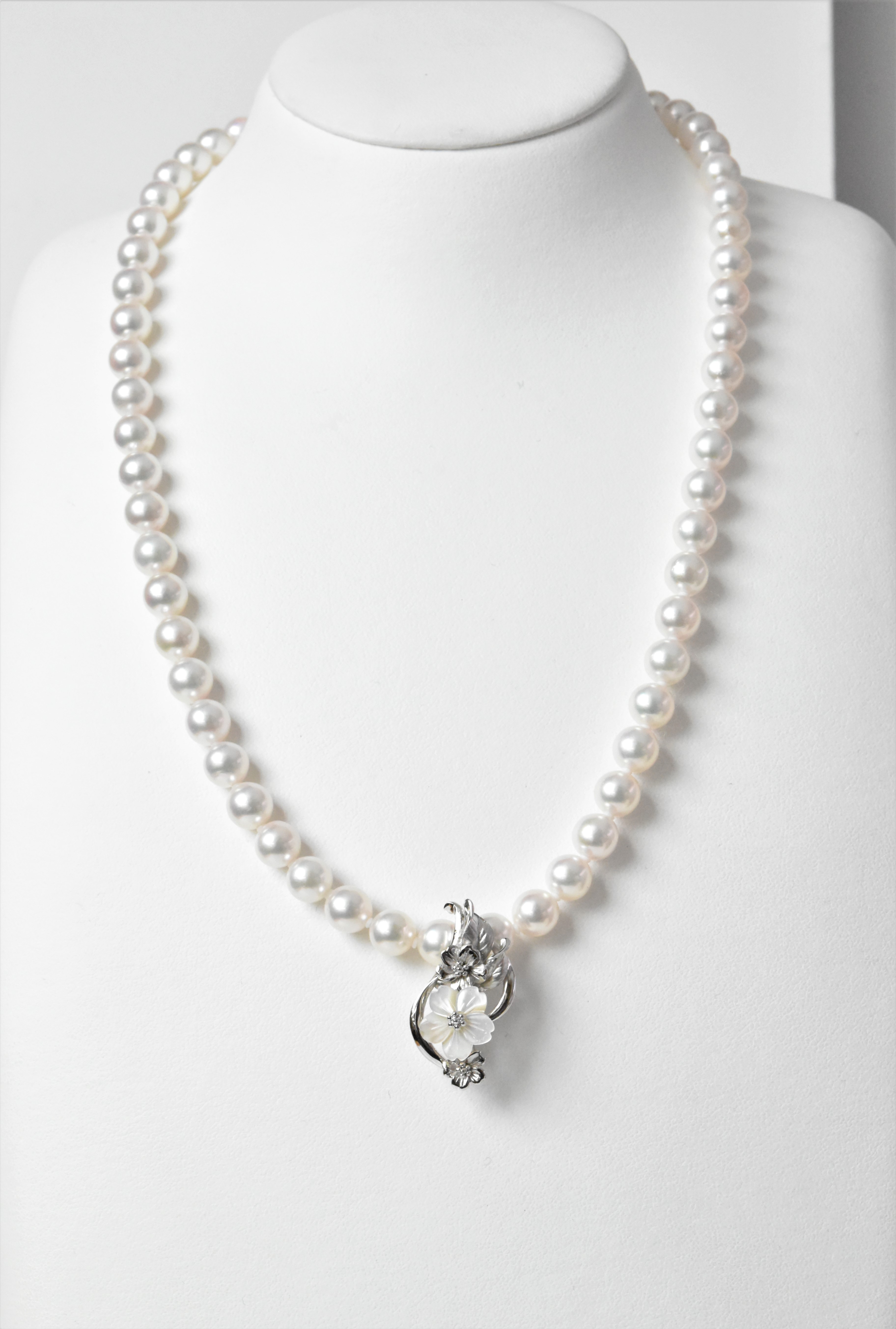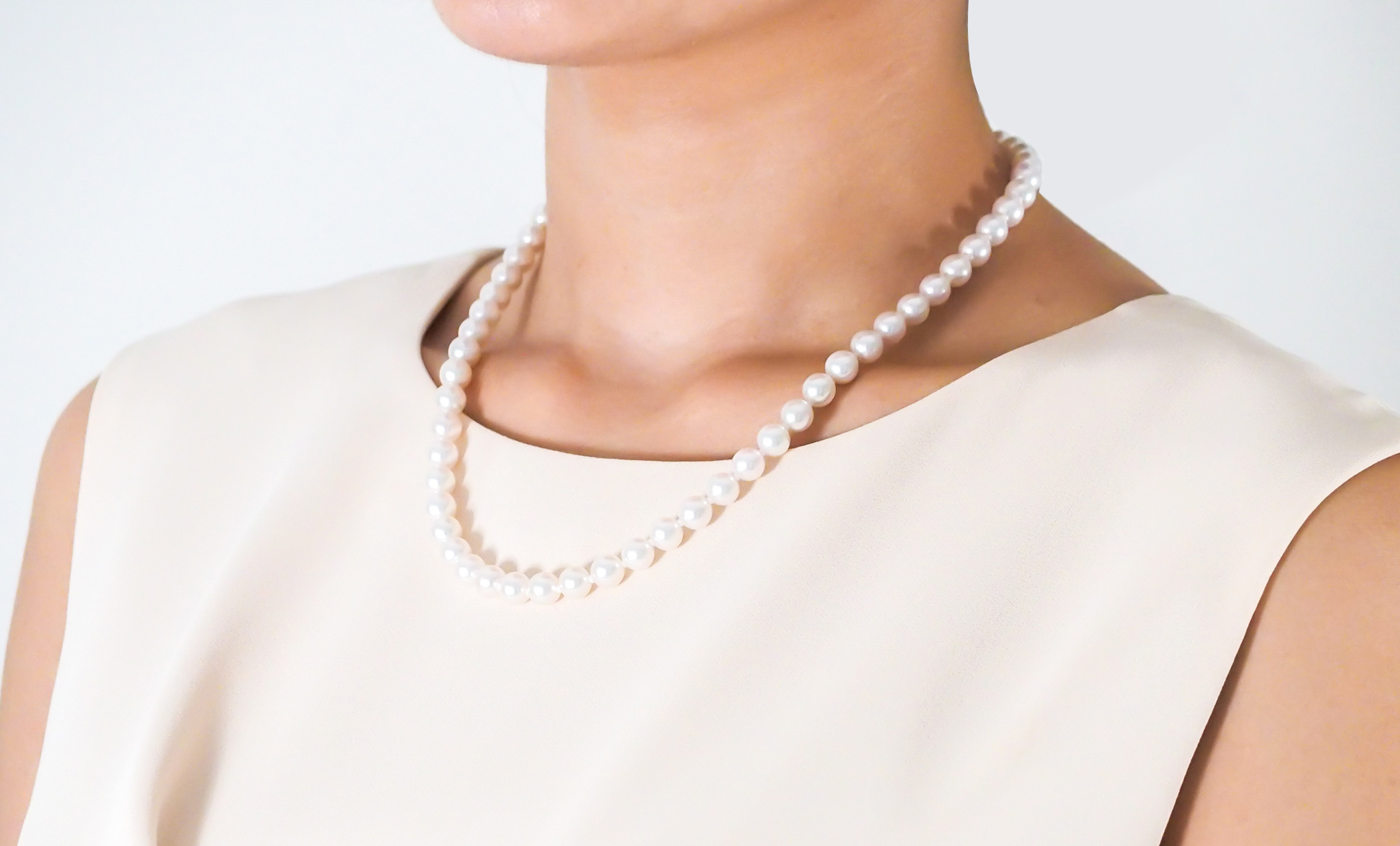 「フレックス パール」と名前を付けた、その場面場面に臨機応変に対応できる真珠ネックレスです。Y字型のおしゃれ用真珠ネックレス、トップ付きの真珠ネックレスさらにはシンプルな一連の冠婚葬祭用真珠ネックレスとして、3通りに形を変えて使用できます。もちろん巻き照りのしっかりした一生ものとしてお使いいただける高品質のあこや真珠を使用しています。たくさんの機会でお使いいただけますので、1本持たれると大変重宝します。