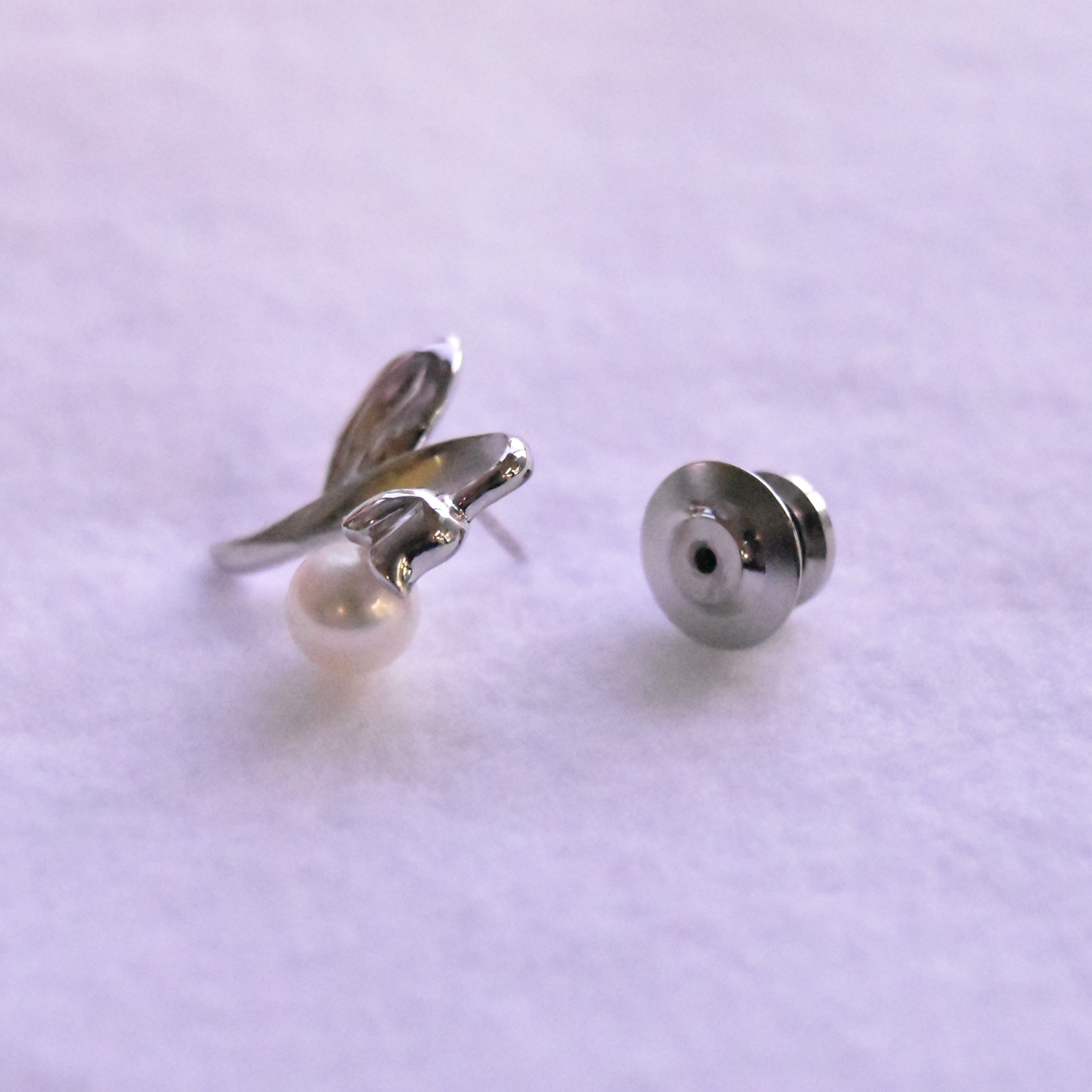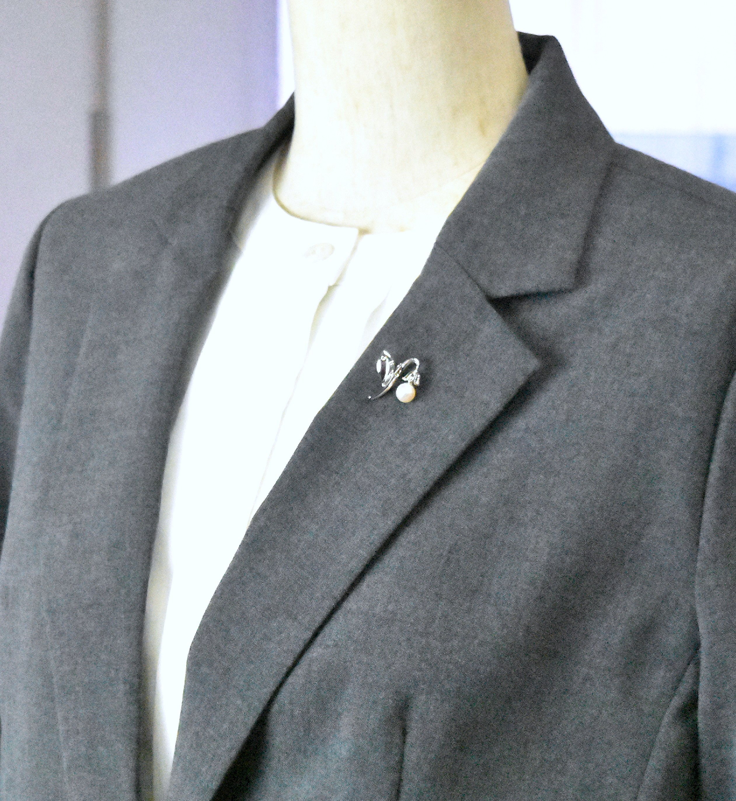 今回のピンブローチは、すずらんの愛らしい佇まいを、一粒のパールと繊細なシルバーワークで表現しました。