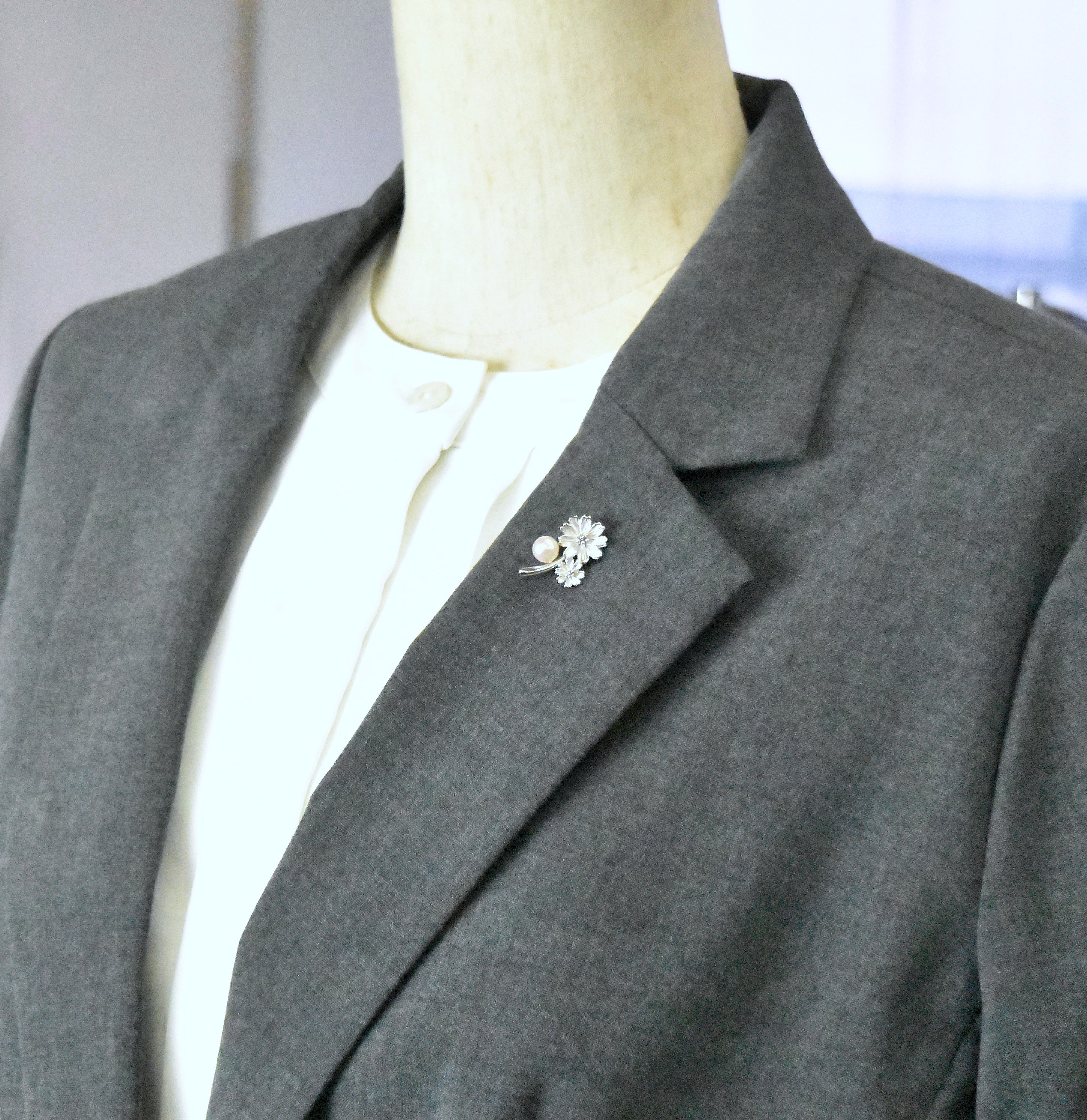 儚げな花びらの重なりと、淡い色合いが織りなす静かな美しさは、秋のニットやジャケットに、季節の移ろいを感じさせるやさしいアクセントに。