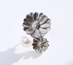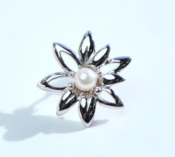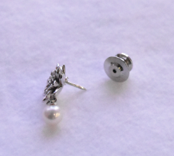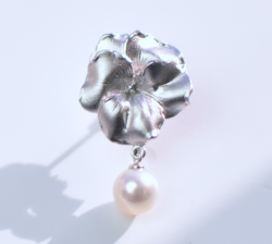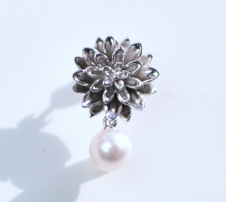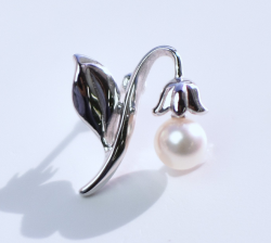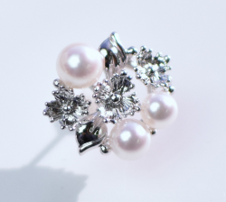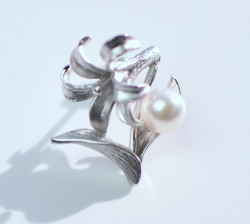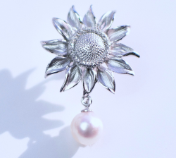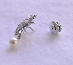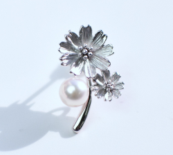 幸運を呼ぶ1月の誕生花・福寿草をモチーフに、上品なあこや真珠をあしらったピンブローチ。
