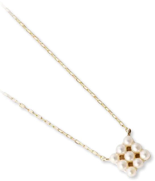 小さめの淡水真珠9珠を正方形に並べた可愛いデザインのペンダントと、小さめの淡水真珠9珠を正方形に並べた可愛いデザインのピアスの2点セットです。約2mmの小さな淡水真珠がぎゅっと集まった感じは何とも言えない可愛さがあります。どちらも全体の大きさのバランスが非常に良いので、真珠の品の良さを感じていただきながら、さりげなく普段使いにお使いいただけます。単品でもご用意しております。